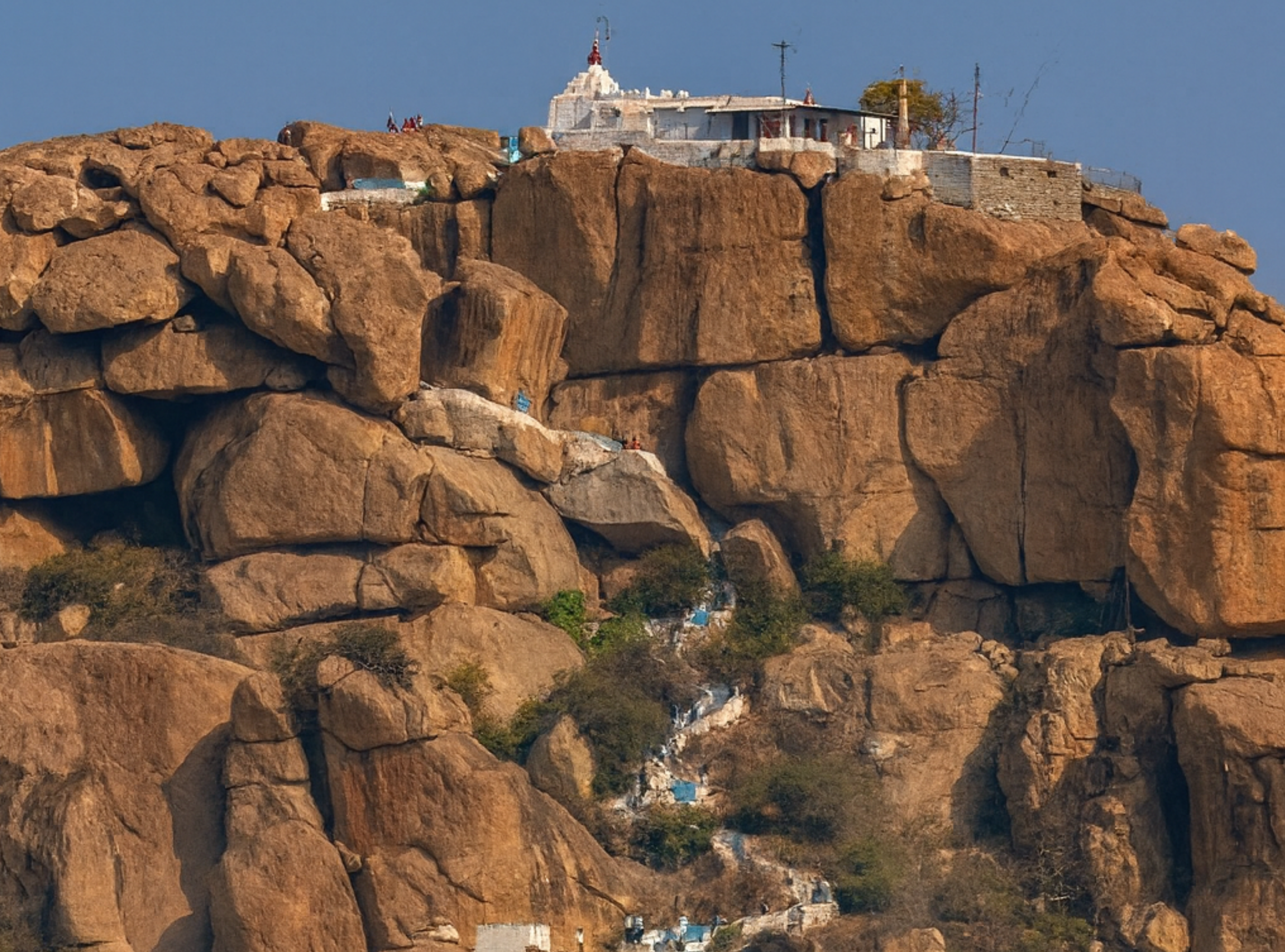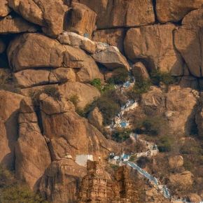The path to Sri Yantrodharaka Hanuman Temple winds through ancient caves and natural rock formations, creating a mystical journey that mirrors the spiritual depth and timeless beauty of Hampi’s sacred landscape.